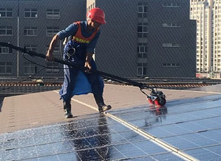 進行光伏板清洗是我們提高發電量一種比較好的方式,對于光伏板清洗方式有很多種。 光伏組件清潔現狀 我國光伏電站一般位于自然環境較為惡劣的偏遠地區,沙塵天氣相對較多。尤其對于我國西北地區的大型地面電站而言,多數位于周邊植被非常少,風沙天氣頻率較高的荒漠地區。該地區的光伏電站不僅臨著遠離水源地,降水量較少,而且地下水也十分匱乏,通過雨水自然沖刷和消防水車難以實現對光伏組件及時的清洗。光伏電站的裝機規模主要分布在數十兆瓦乃至數百兆瓦之間,其占地面積通常達數平方千米,電池板數量更是高達上萬塊乃至數十萬塊,即便有充足的水源、設備和人力,要完成一次如此大規模的清洗,其龐大的工作量也難以想象。